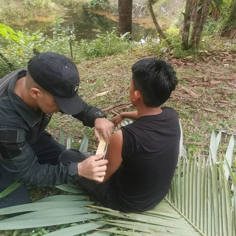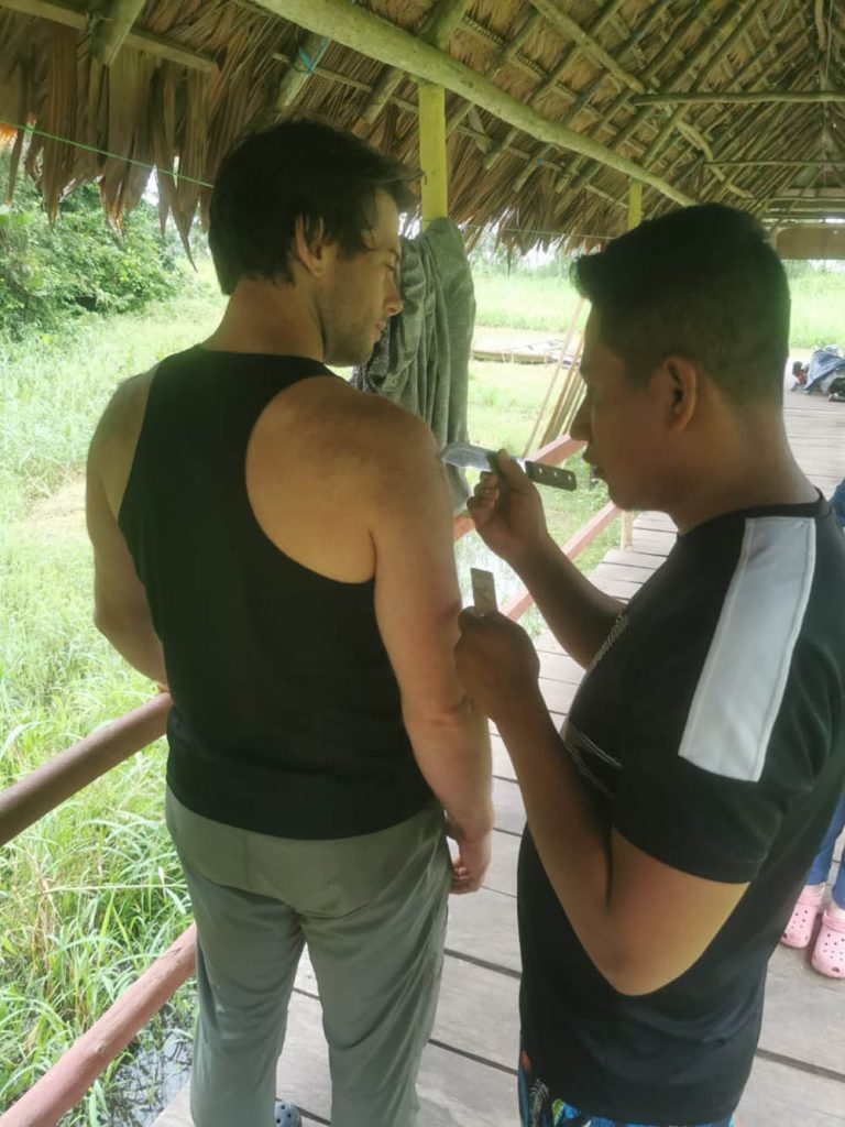 Kambó, when chosen, is offered prior to the Ayahuasca ceremony as a traditional cleansing practice to help prepare the body and mind.