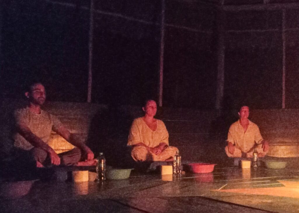 As night falls and the jungle’s natural rhythms take over, participants gather in the maloca, a ceremonial space built in harmony with the surrounding forest.